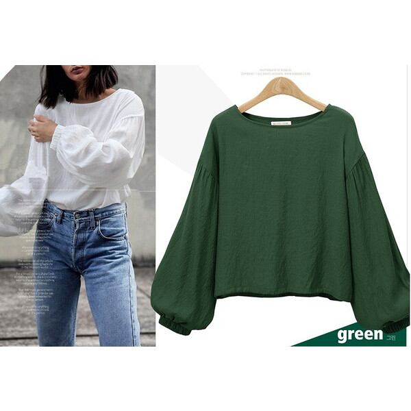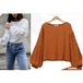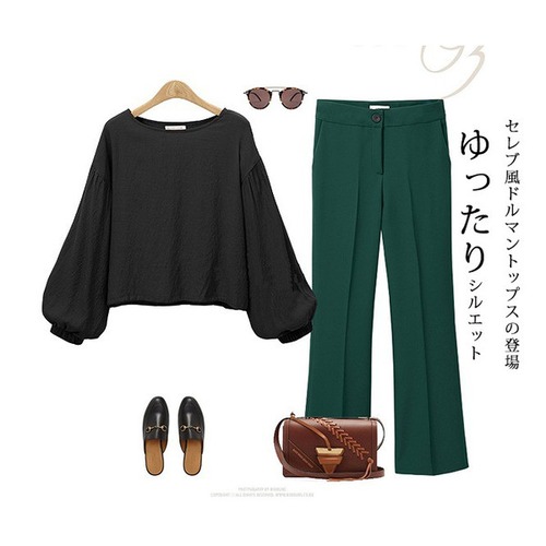 大きいサイズ レディース トップス クルーネック 袖ボリューム海外セレブ