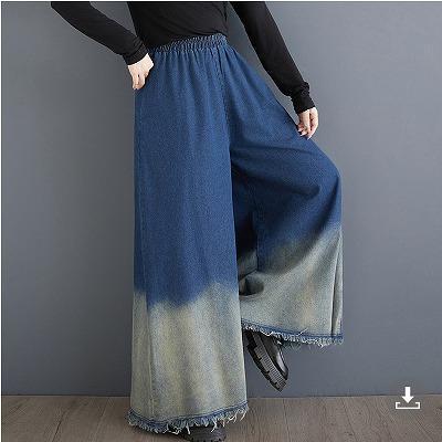 大きいサイズ デニム ワイドパンツ カットオフ レディース 秋冬 春 新品