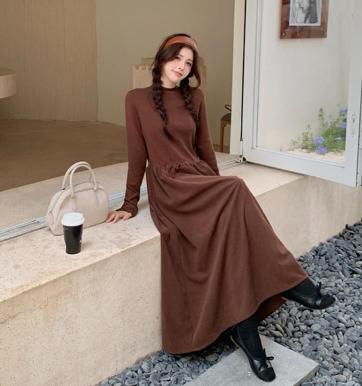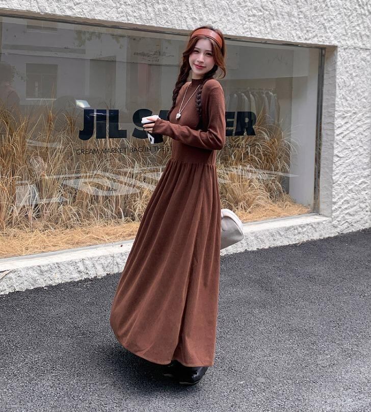 大きいサイズ ワンピース ロング ハイネック レディース 秋冬 春 新品 長袖