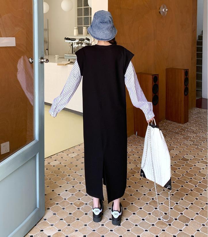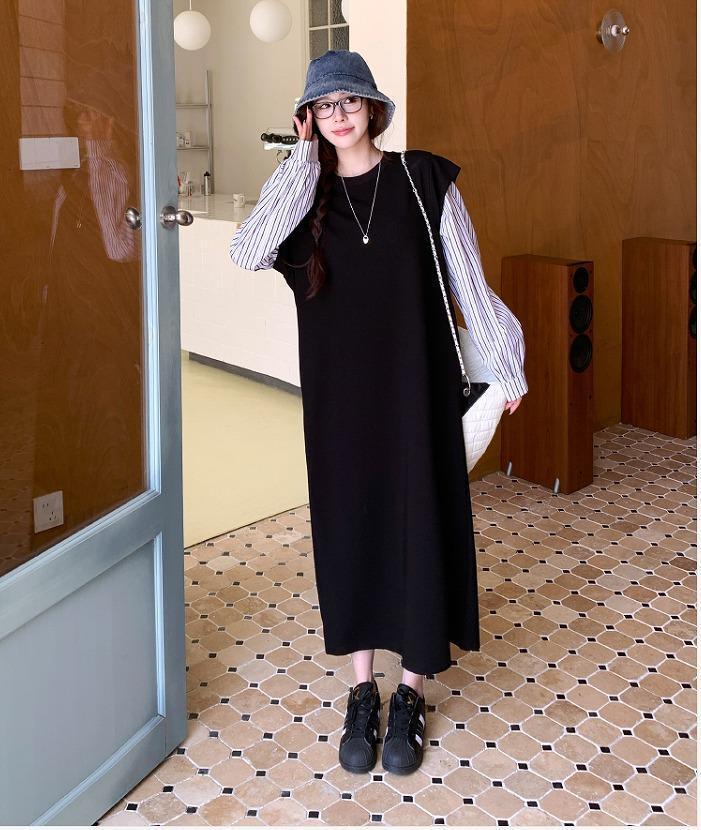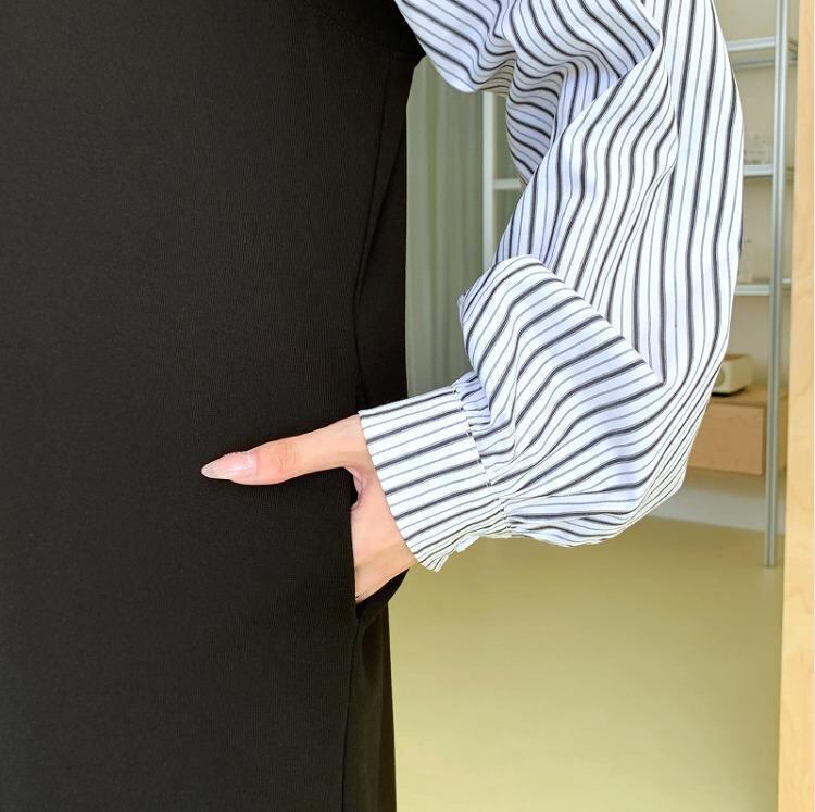 大きいサイズ ワンピース 重ね着風 レディース 秋冬 春 新品 長袖 シャツ ストライプ レイヤード