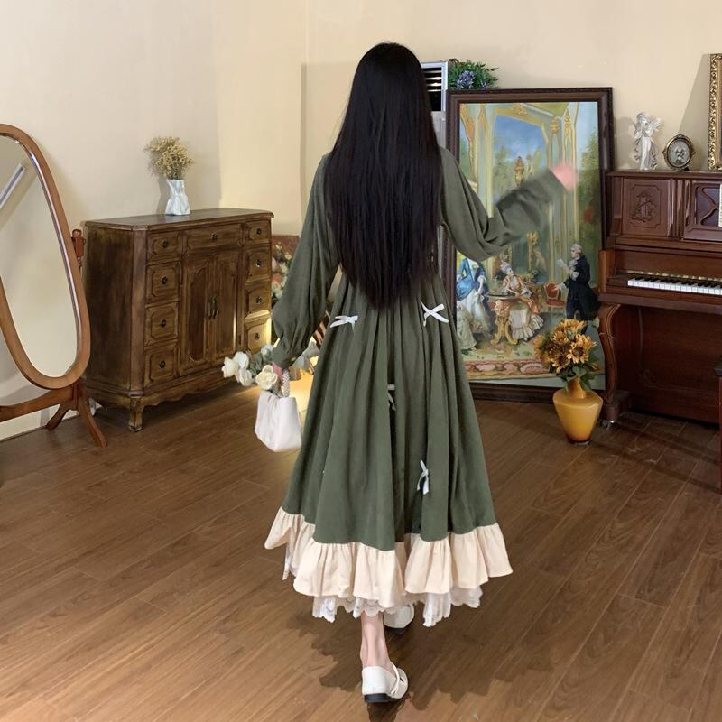 大きいサイズ ロング ワンピース 原宿 レディース 秋冬 春 新品 長袖 リボン
