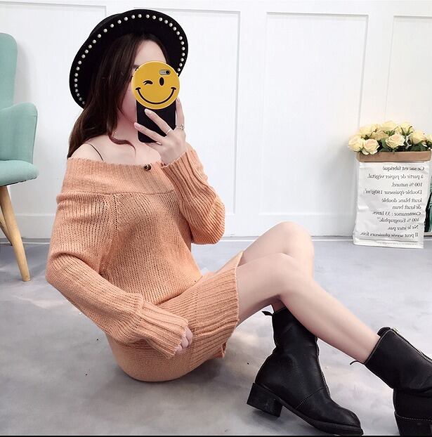 大きいサイズ レディース送料無料 オフショルダーニットワンピース セーター 肩出し 秋冬 長袖