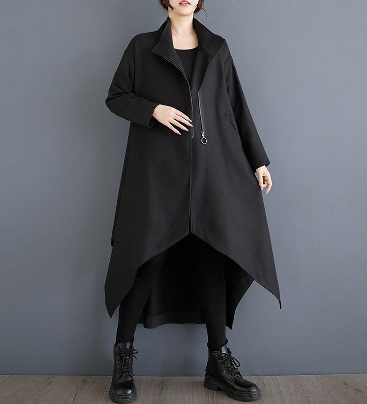 大きいサイズ コート イレギュラー 変形 レディース 秋冬 春 新品 長袖 ブラック ヘム アシメ アウター