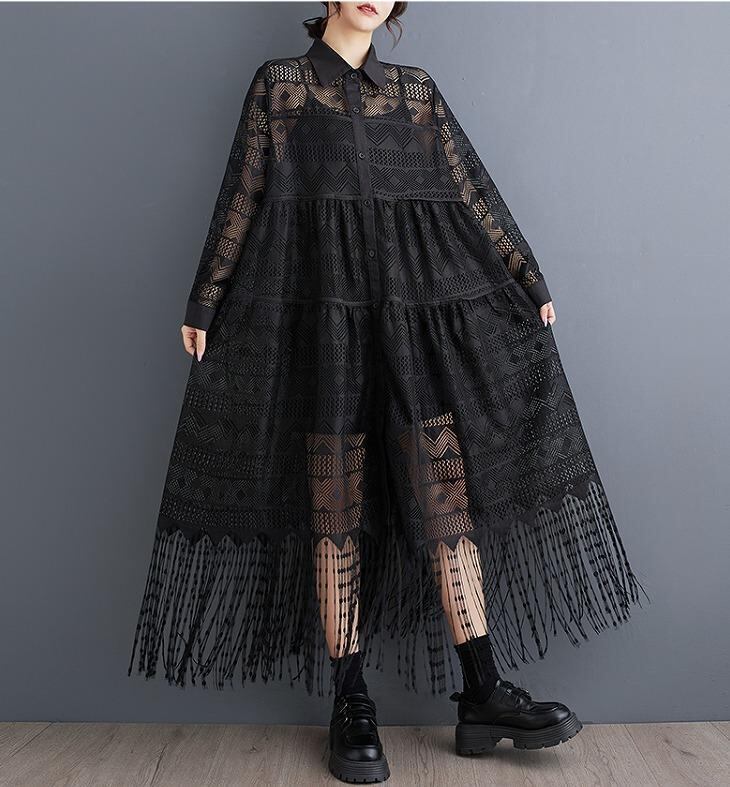 #メルカリ出品 #ワンピース #レース #フリンジ #シースルー #ロングワンピース #大きいサイズ #レディース #春夏コーデ #秋冬コーデ #新品 #黒 #ブラック #20代コーデ #30代コーデ #40代コーデ