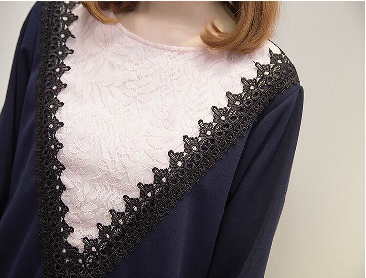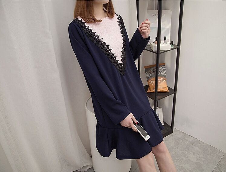 大きいサイズ レディース送料無料 異素材フロントレースワンピース 長袖 ガーリー