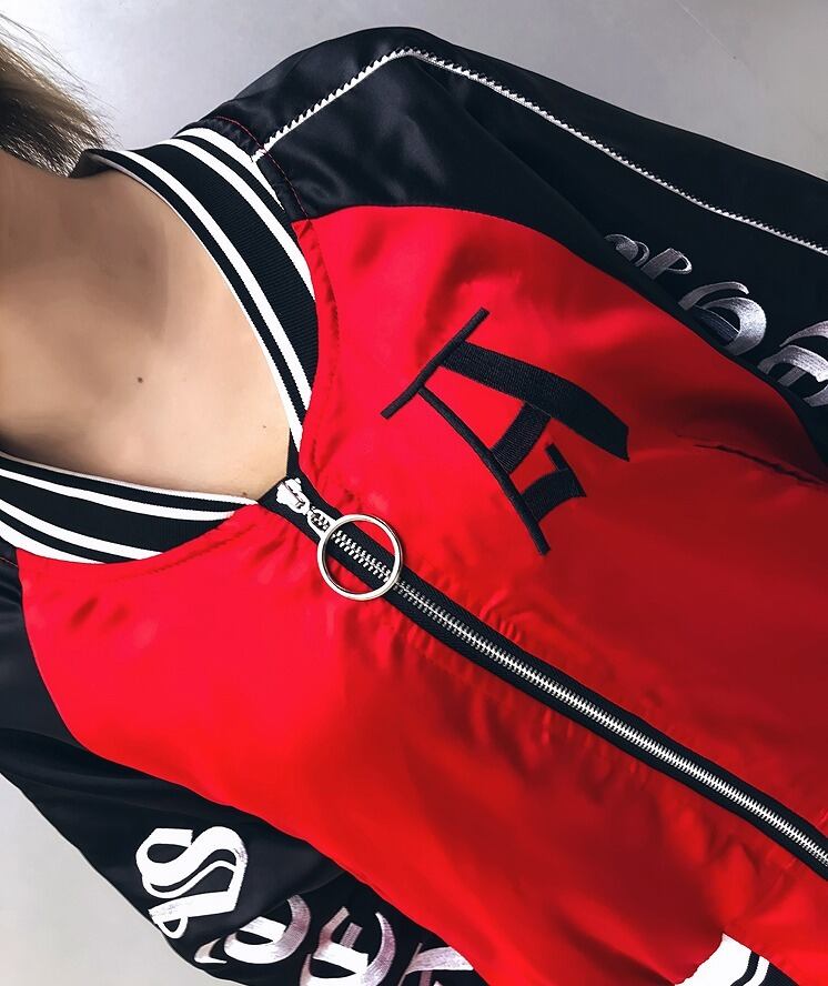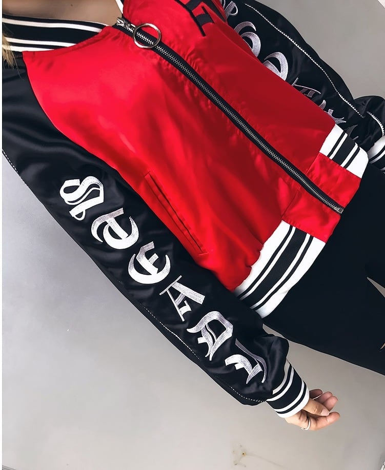 大きいサイズ レディース送料無料 袖ロゴ ブルゾン ジャンパー アウター 長袖