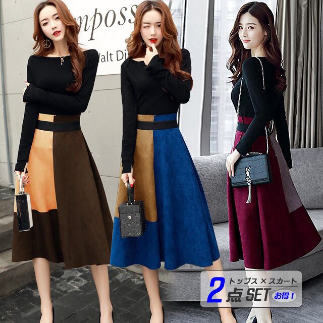 大きいサイズ トップス×スエードスカート☆セットアップ 上下セット