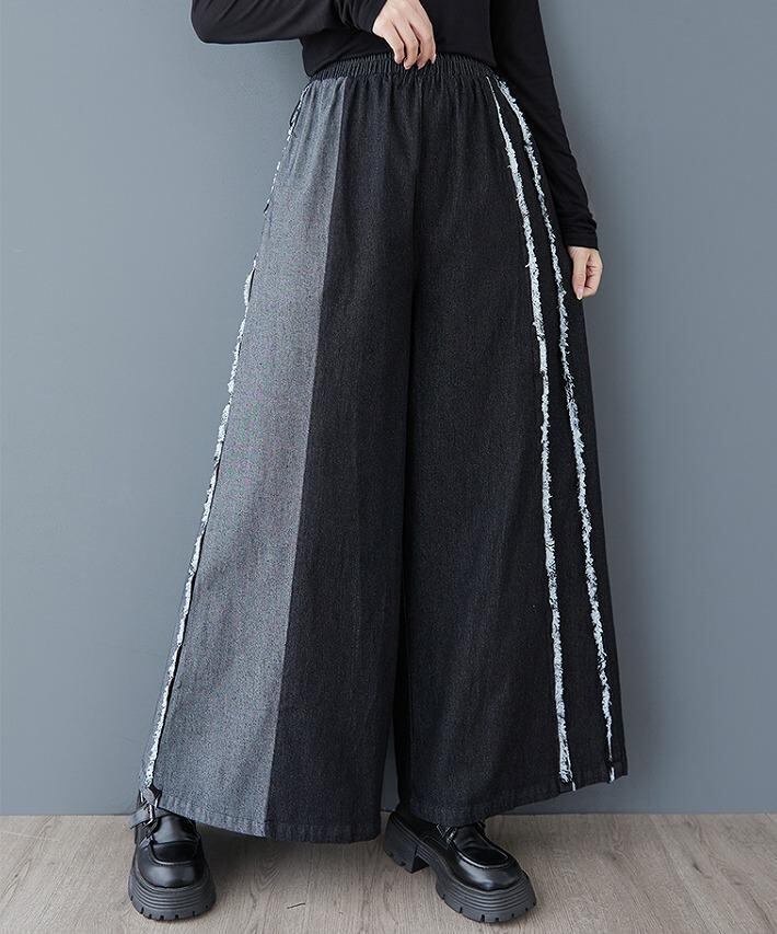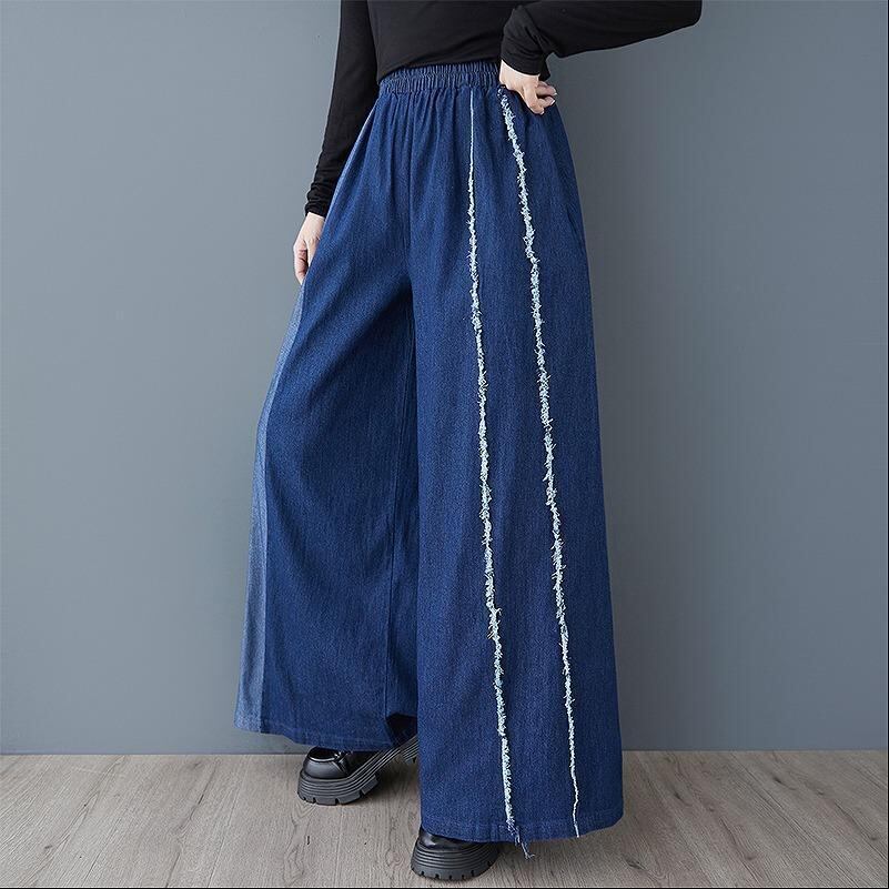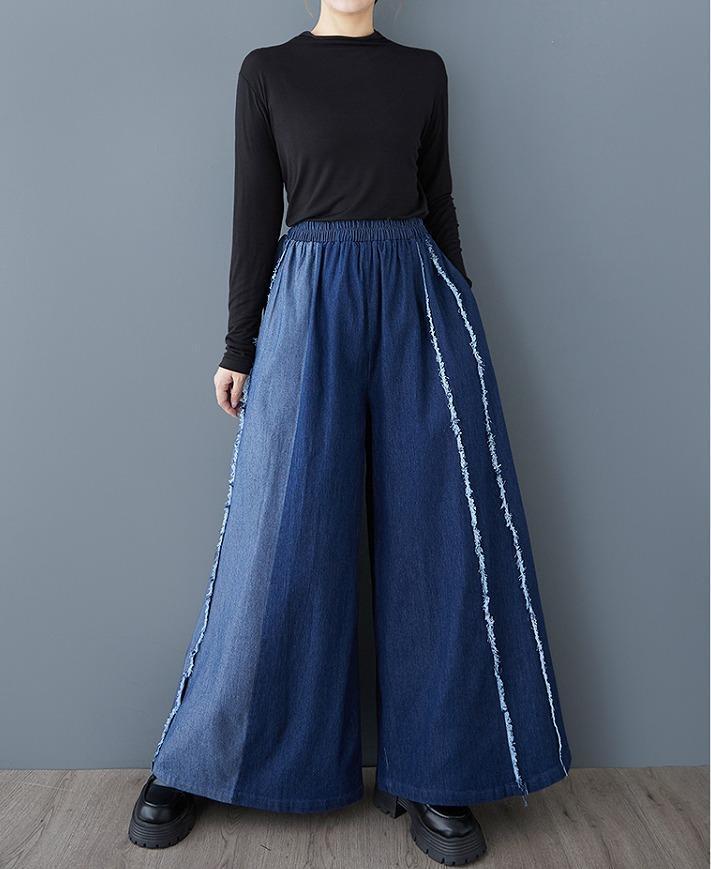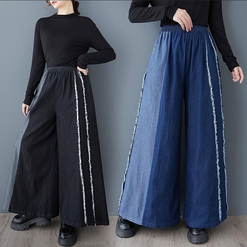 大きいサイズ パンツ ウエストゴム レディース 新品 デニム ダメージ ガウチョ