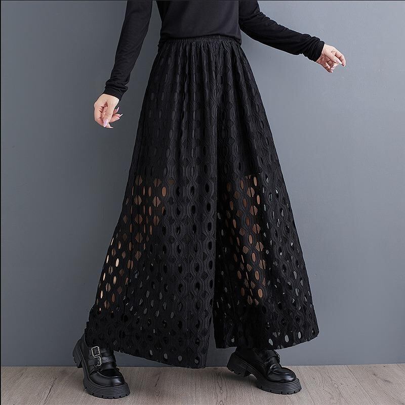 大きいサイズ スカート レース シアー レディース ロング 新品 ブラック 透け