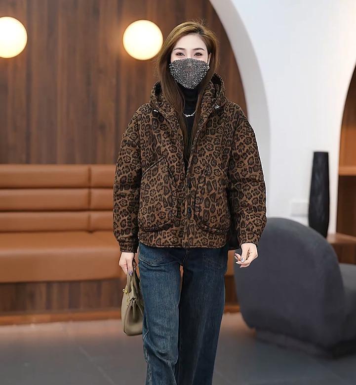 大きいサイズ コート アウター レディース フード 秋冬 新品 長袖 ヒョウ柄