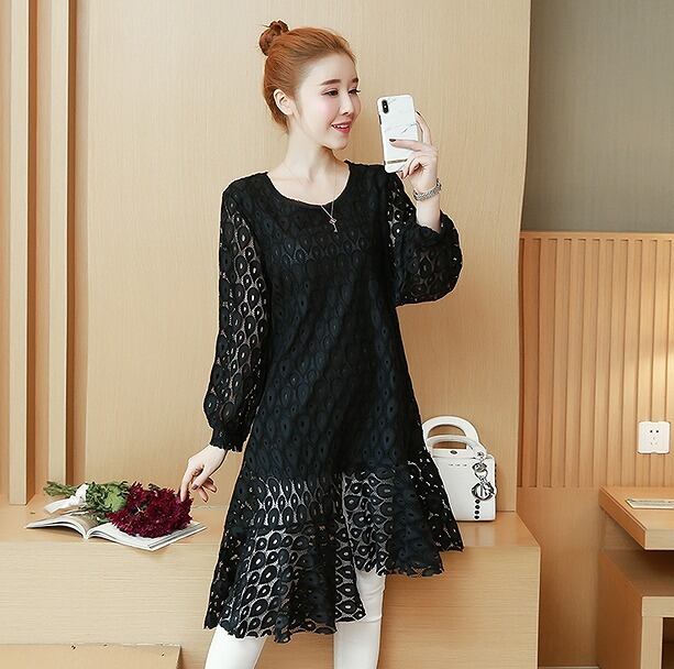 大きいサイズ レディース送料無料 総レース アシメワンピース 春夏 長袖