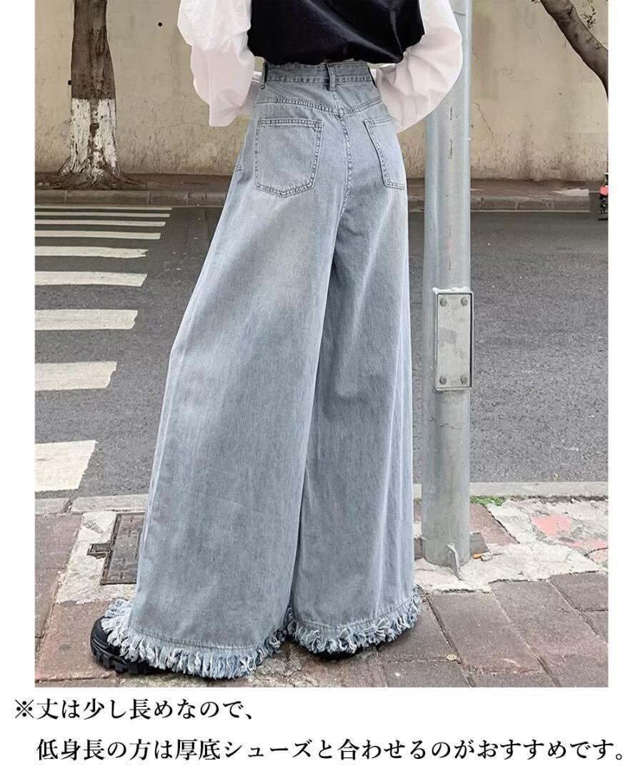 デニム ワイドパンツ フリンジ 大きいサイズ レディース 秋冬 春 新品
