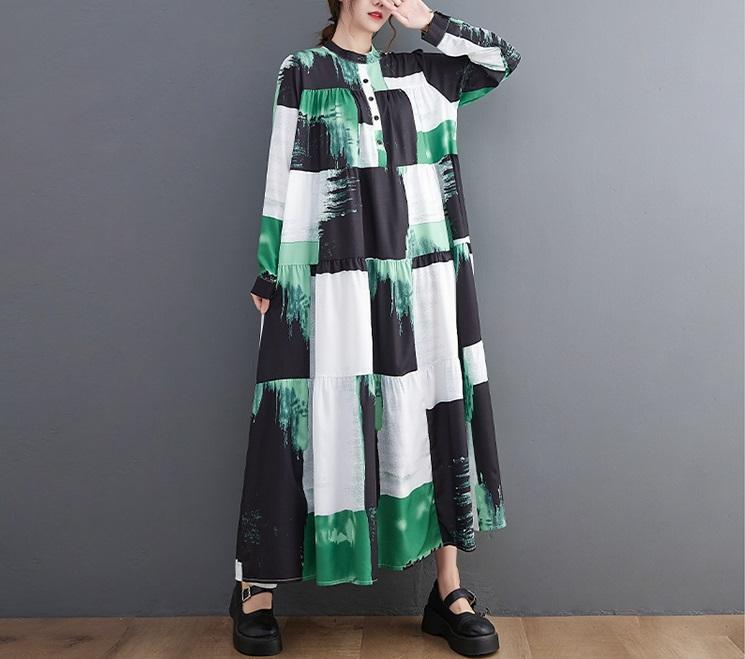 ロング ワンピース 大きいサイズ グリーン レディース 秋冬 春 新品 長袖