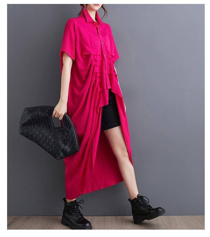 イレギュラー トップス 大きいサイズ レディース 変形 春夏 新品 半袖 レッド
