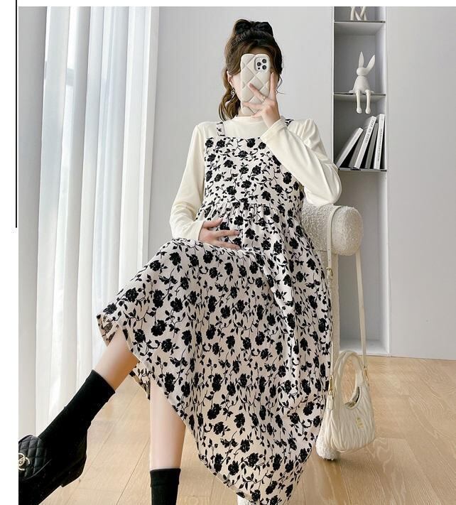 花柄 ワンピース 大きいサイズ レディース 秋冬 春 新品 長袖 重ね着風