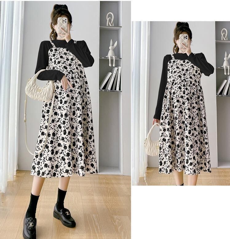 花柄 ワンピース 大きいサイズ レディース 秋冬 春 新品 長袖 重ね着風 レイヤード サロペット