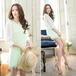 淡いパステルカラーと袖口のリボンが可愛いく爽やかなワンピース♪