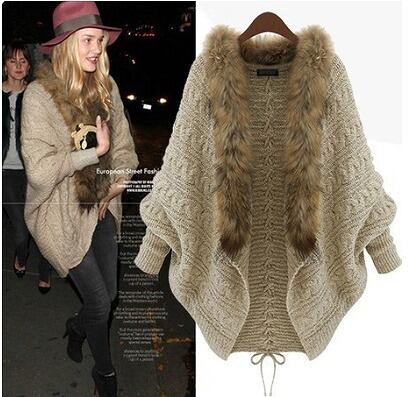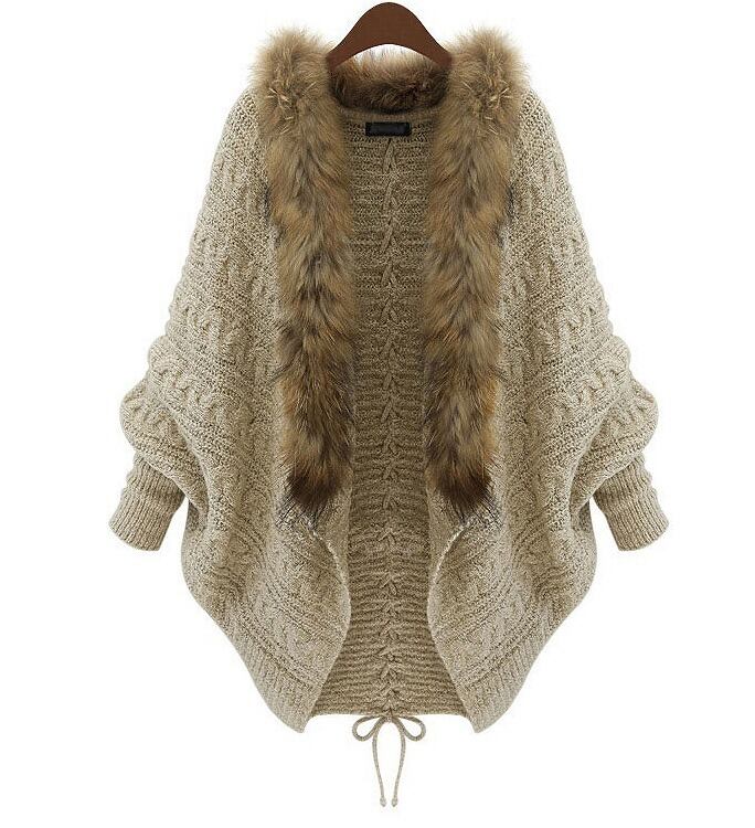 大きいサイズ レディース フェイクファー ドルマン ニット カーディガン 秋冬