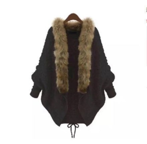 大きいサイズ レディース フェイクファー ドルマン ニット カーディガン【Sc8911697】
