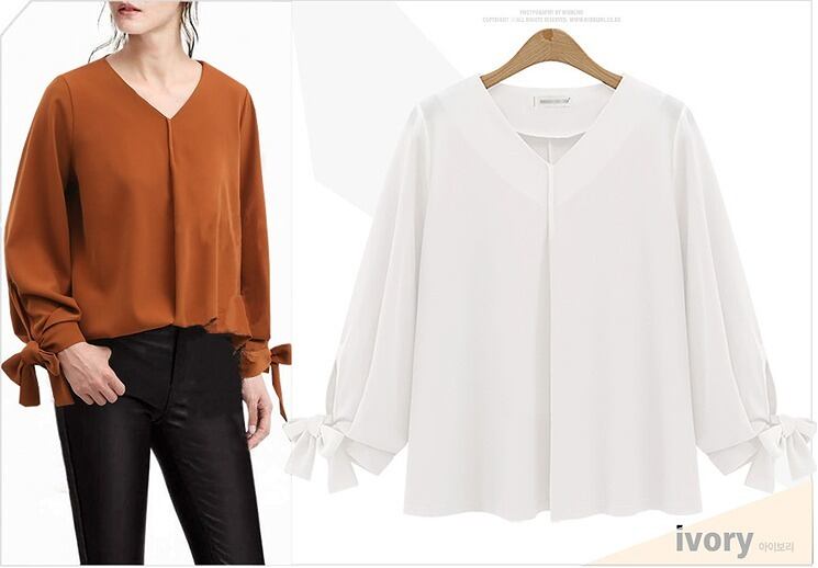 大きいサイズ レディース 袖リボン シフォントップス シャツ 長袖 春