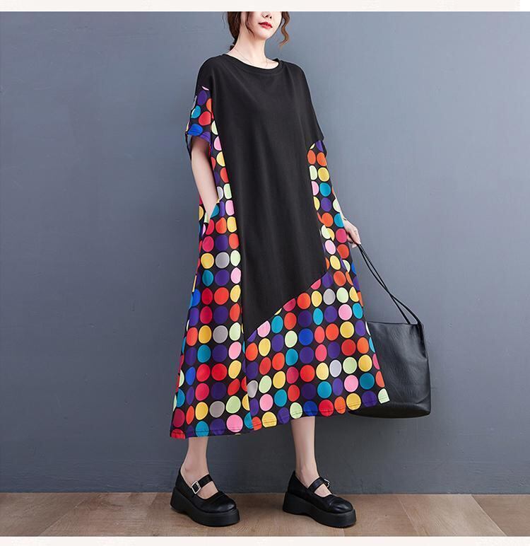 大きいサイズ ワンピース ドット 水玉 レディース 春夏 新品 半袖 カラフル 派手
