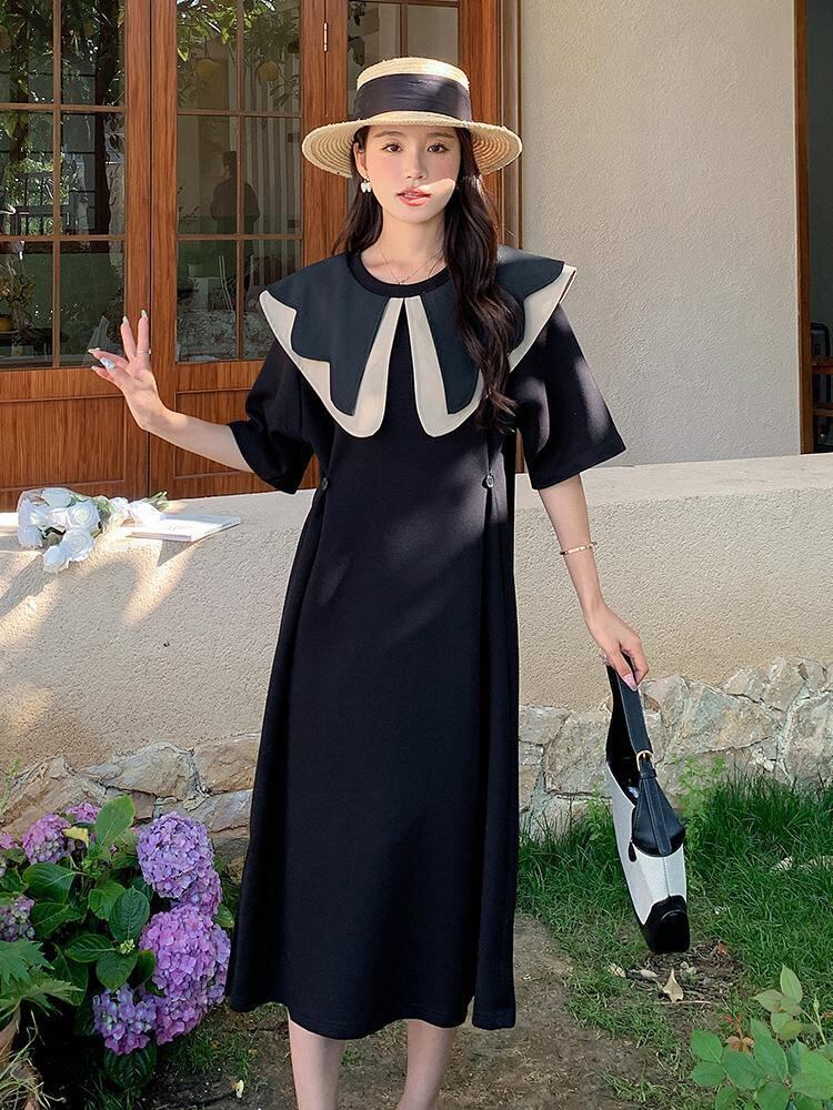 大きいサイズ ワンピース ビッグ襟 レディース 春夏 半袖 新品