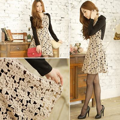 大きいサイズ レディース フラワーレースワンピース 長袖